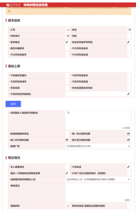 为实现科学、迅速、精准的疫情防控信息填报统计,确保学校如实掌握全体师生每日健康状况,通过特殊时期信息采集应用实现师生“每日报平安”。师生“一键式填报”,管理人员“一键式汇总”,高效、快速、实时掌控全校1.6万余师生健康动态信息,层层压实各部门防疫责任,实现疫情防控“一站式管理”。