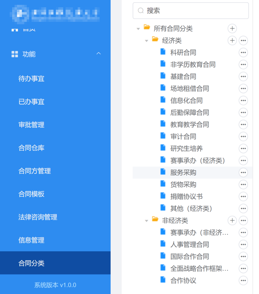 分类分级管理全覆盖:经济类合同、非经济类合同,全覆盖管控,合同管理不留死角;综合管理部-业务归口部门-业务承办部门,三级管理全打通。