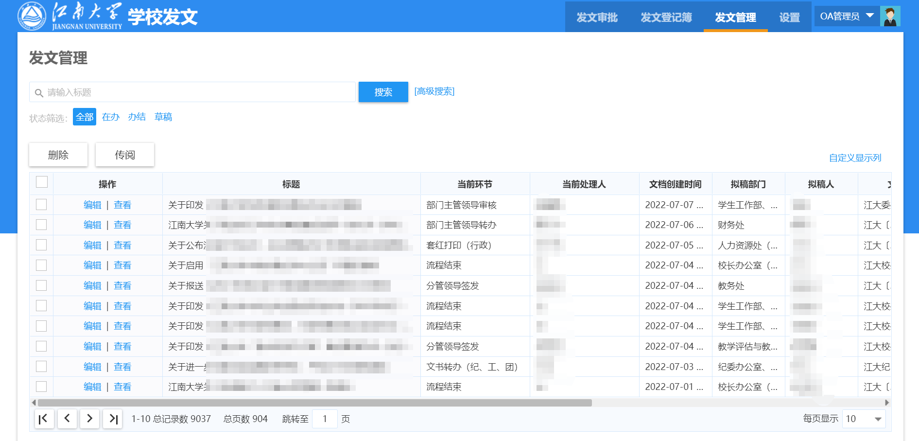 2021年1月江南大学联合金智教育重新打造学校办公自动化系统,建设了学校公文管理、会务管理、公共事务、日程安排、督查督办、通讯录等一系列应用,全面覆盖党政办日常事务管理,实现线上公文一体化管理、学校会务全生命周期管理、督查督办件件有落实,事事有回音,通过全新的办公平台,增加行政管理能力,完善综合服务水平,真正实现师生事务在网上办事、掌上办事,让“数据多跑路,师生少跑腿”。