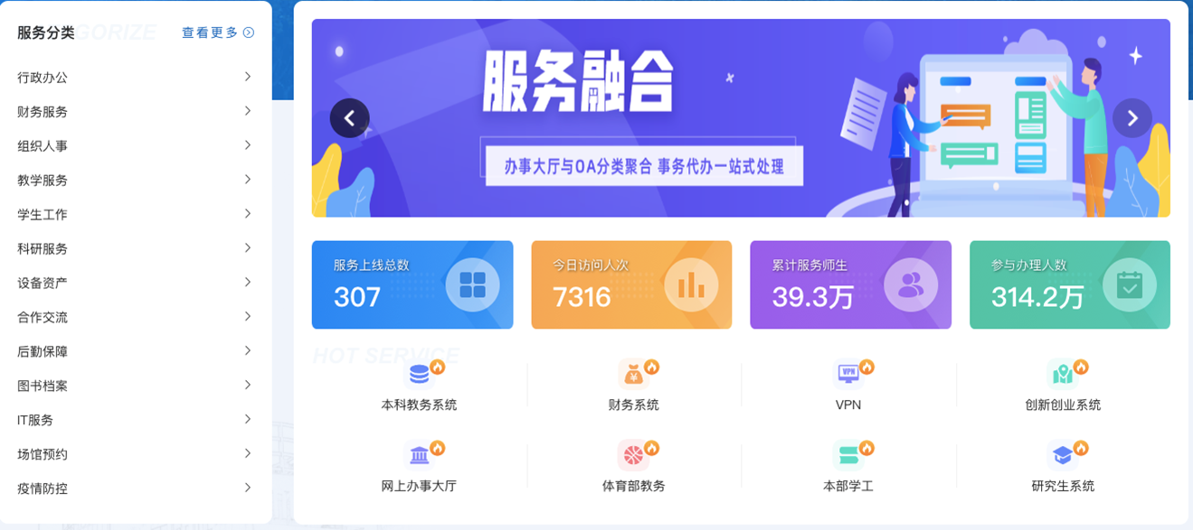 一网通办支撑套件:一网通办支撑套件提供高校一网通办运营所需的软件工具,包括服务事项中心、事项与流程运营效率看板,帮助学校建立校级服务治理机制,提升服务质量、优化服务效率,最终实现校务服务的科学治理。
